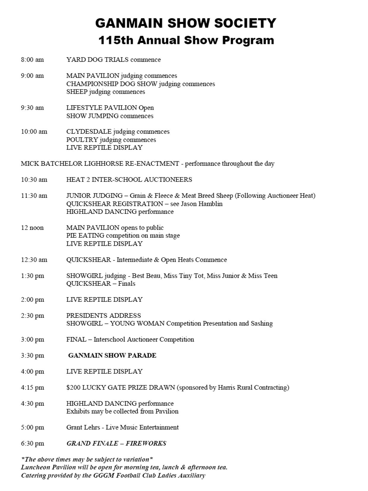 2025 Ganmain Show Society Annual Show, Saturday 23rd August
